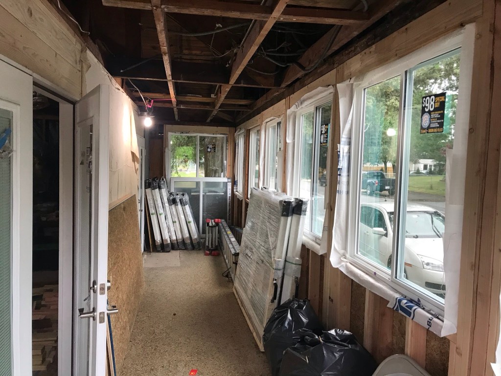 Can’t have a blog named “guns to roses” without some plant life! The existing gun club tavern was built approx. 6 feet from the street so when drawing up plans, I decided to create a small sunroom up front to provide a barrier to protect the house from any potential car crashes that could end up through the front wall. I have outfitted the room with a utility sink, plenty of plants, grow lights and it’s my personal favorite